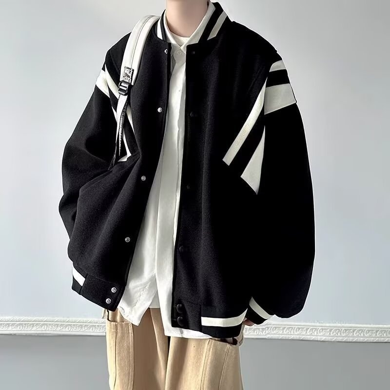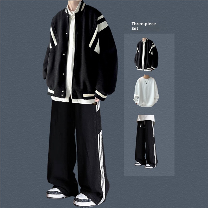 001 Giacca da baseball da uomo in stile pilota americano, alla moda, stile High Street, per ragazzi, primavera e autunno, set da tre pezzi