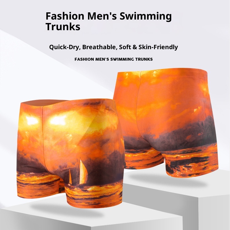 001 Boxer da bagno da uomo con stampa digitale 3D, ad asciugatura rapida, completamente foderati, a vita media, per adulti