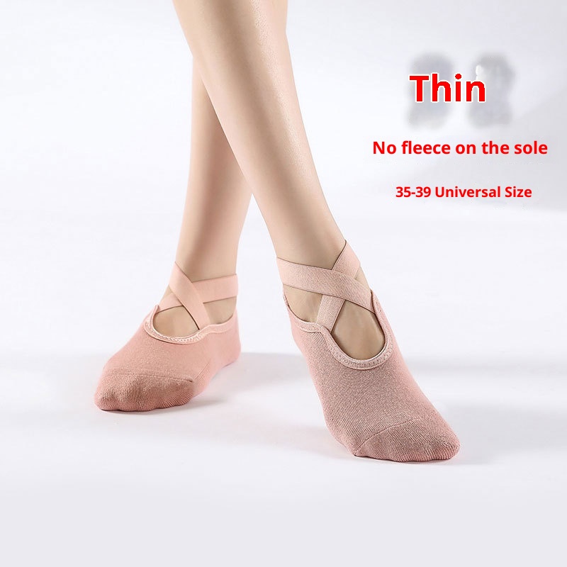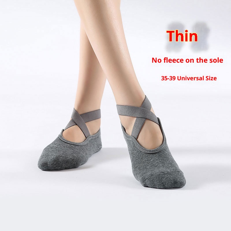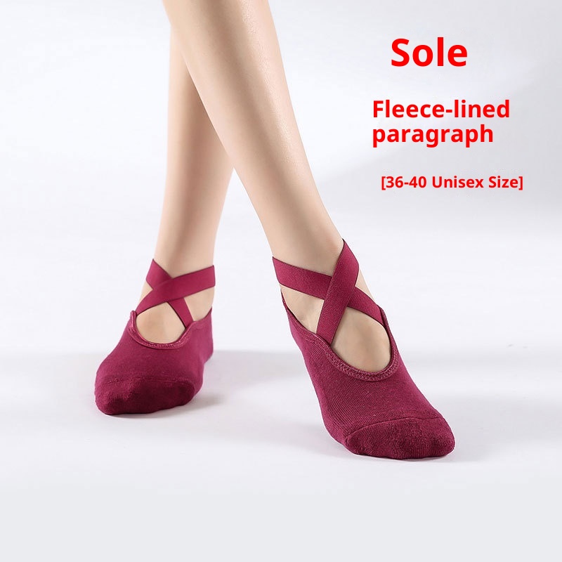 001 Calzini antiscivolo da donna per yoga, autunno e inverno, in cotone spesso, per pilates, danza e fitness, punta aperta, per interni