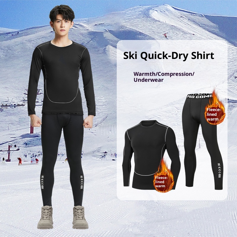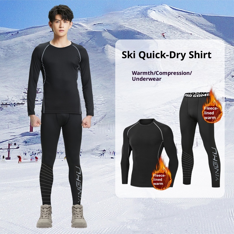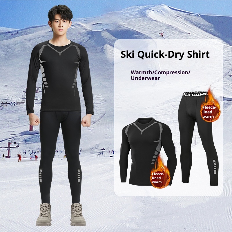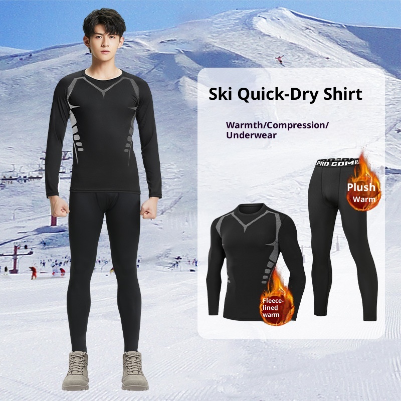 001 Intimo sportivo invernale da uomo ad asciugatura rapida, intimo termico da corsa, strato di base, set fitness in pile per attività all'aperto
