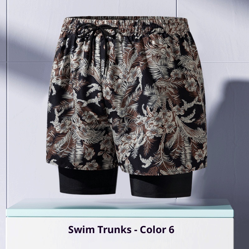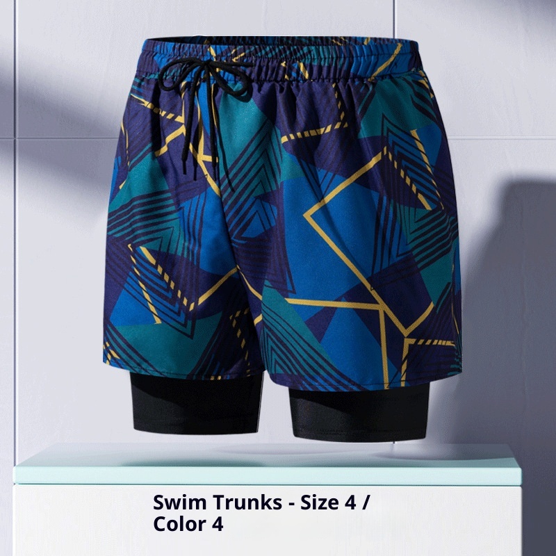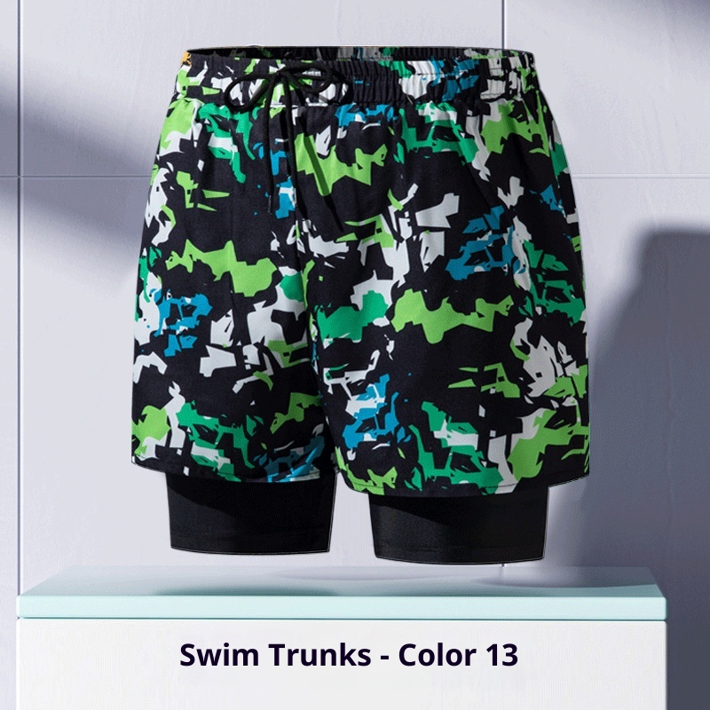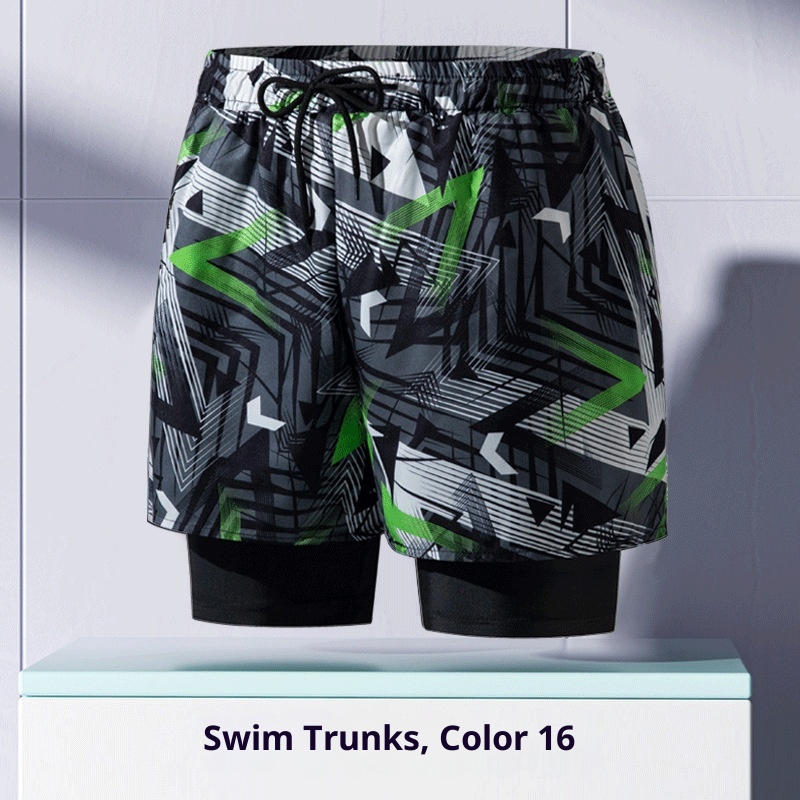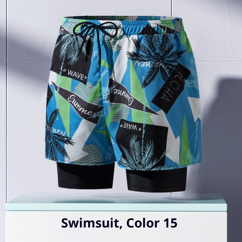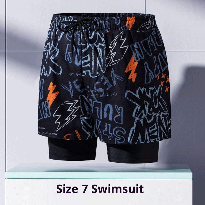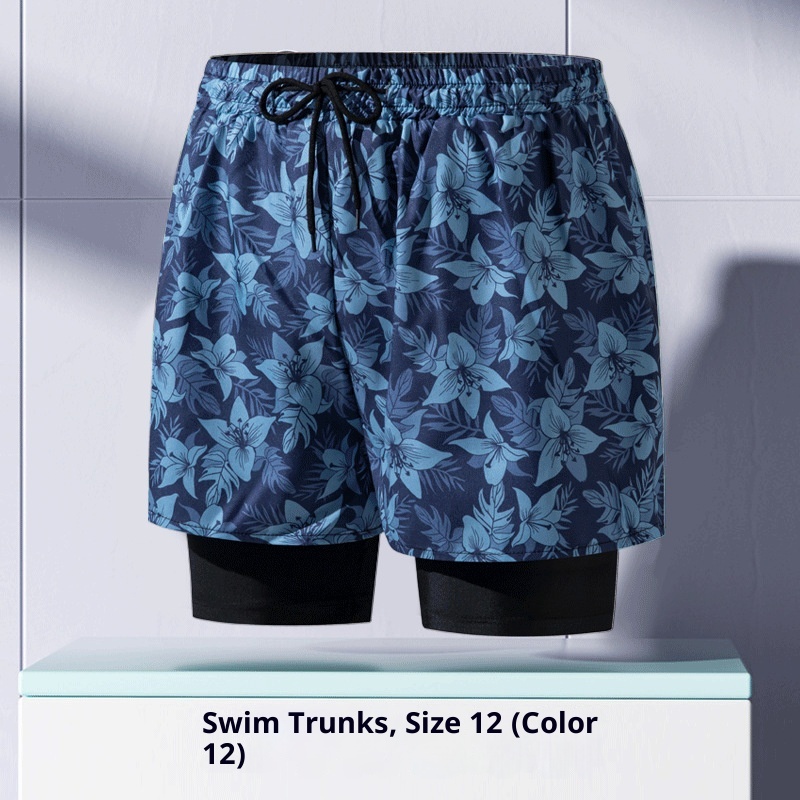 001 Costume da bagno da uomo per adulti, nuovo boxer largo alla moda professionale anti-imbarazzo a doppio strato ad asciugatura rapida, elastico alto