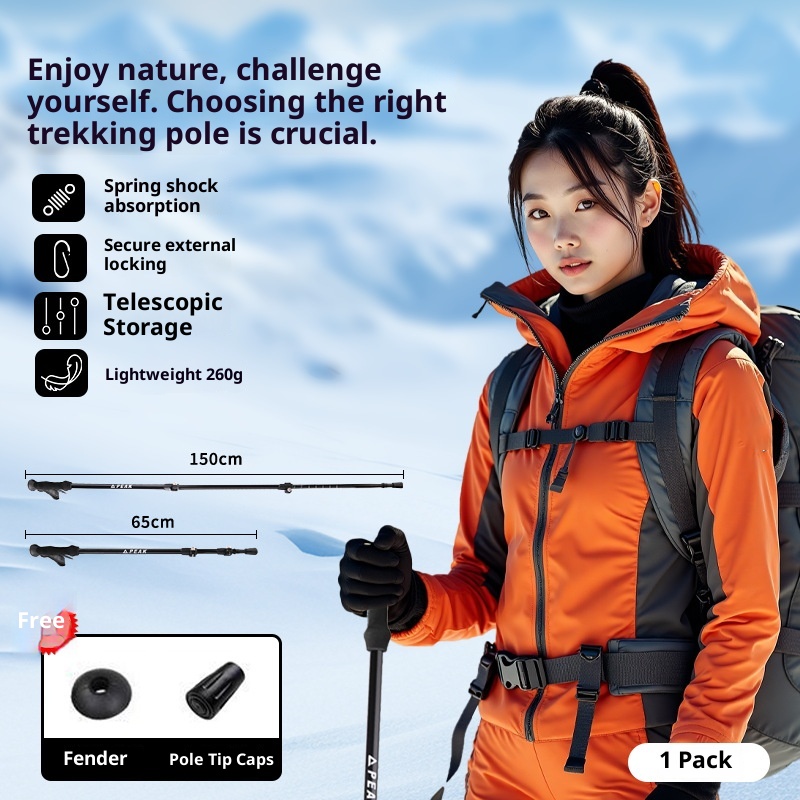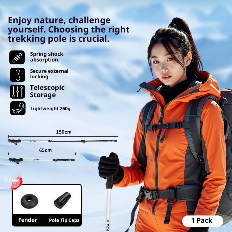 001 Peak Bastoncino da trekking 2 in 1 speciale per arrampicata ed escursionismo, bastone da passeggio telescopico in lega di alluminio con attacco a scatto