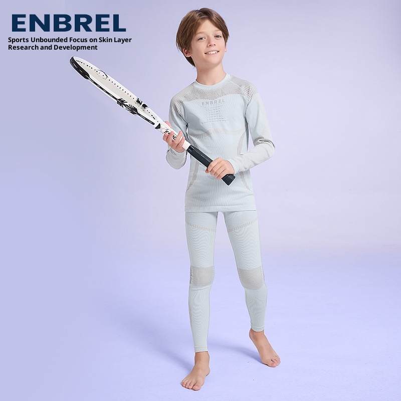 001 Set di biancheria intima termica e elastica aderente per bambini e bambine, da sci, da corsa, ad asciugatura rapida