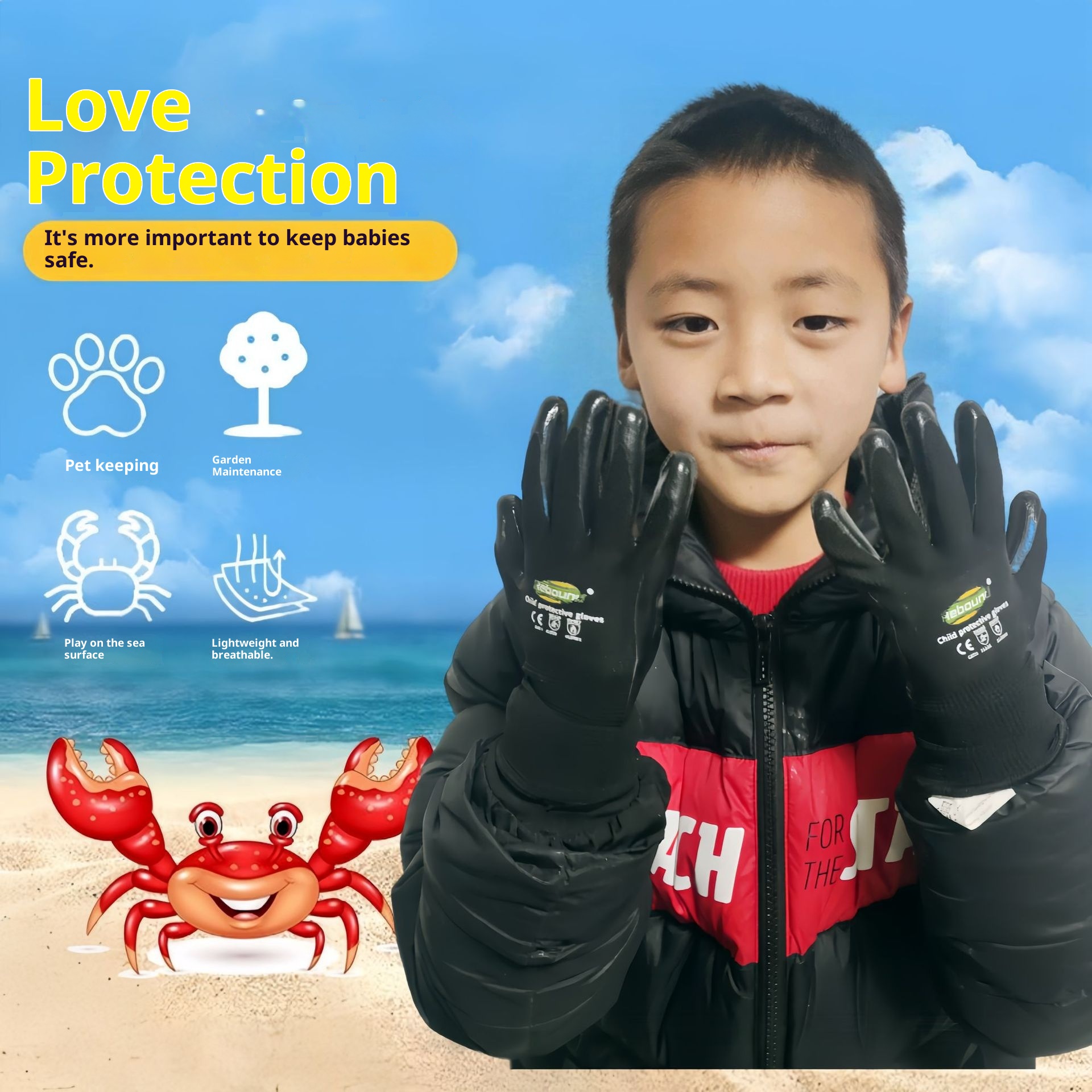 001 Guanti speciali per la ricerca di cibo in mare, guanti impermeabili e antiforatura per bambini, protezione del lavoro per adulti, resistenti al taglio,
