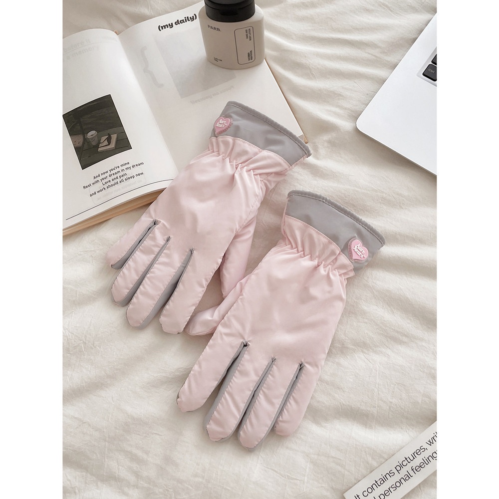 001 Guanti invernali per studentesse, carini, antifreddo, caldi, da ciclismo, foderati in pile, cotone spesso, sci all'aperto,