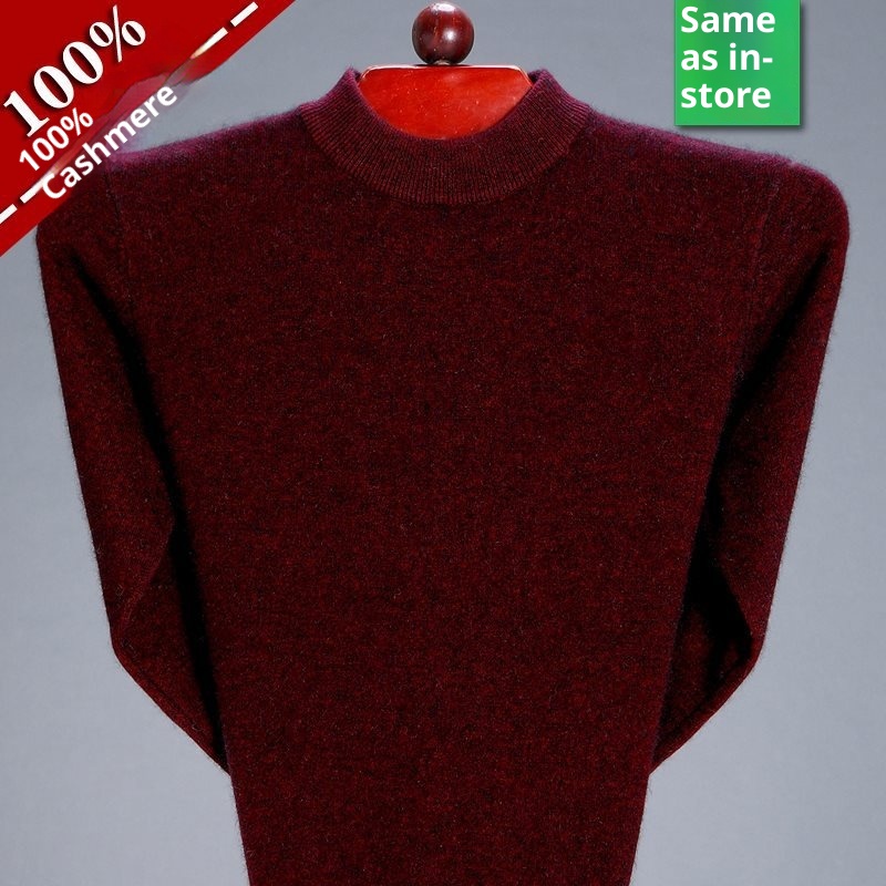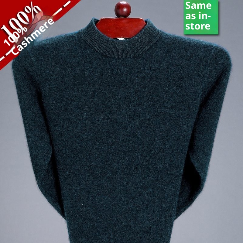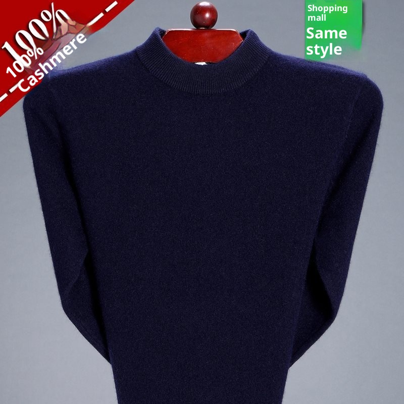 1 autentico maglione in pura lana ispessita per uomo, maglione a collo alto, strato di base per la mezza età, maglione da papà