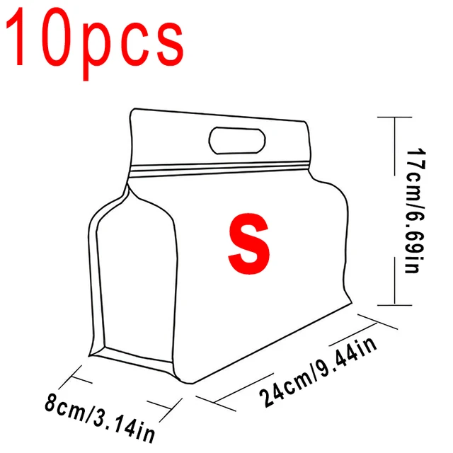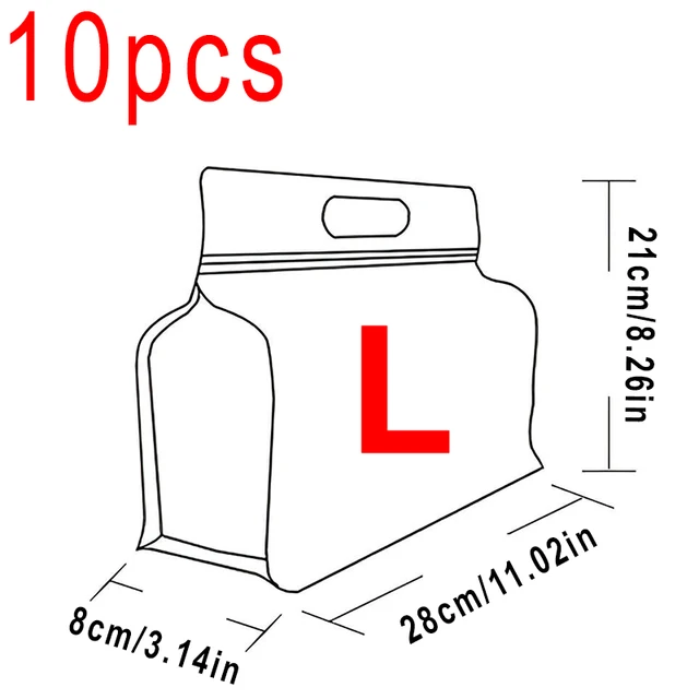 10 pezzi sacchetti trasparenti per alimenti in PET sigillati e riutilizzabili portatili a prova di perdite, per la casa, la cucina, le forniture, la confezione fresca