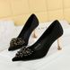 1818-H90 Scarpe con tacco alto a punta con fiori in metallo con perline sottili, tacco alto basso e comodo realizzato in