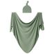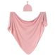 Large Jersey Knitted Swaddle Blanket for Baby, Soft Stretchy Receiving Blanket for Newborns with Hat
