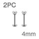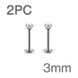 MEASUREMENTS: Gauge Size: 16G (1.2mm). Bar Length: 6mm (1/4"), 8mm (5/16"), 10mm (3/8"). CZ Size: 2mm, 3mm, 4mm. CZ COLOR: Clear. COLOR: Silvertone. PIERCING TYPE: Labret, Tragus, Helix, Conch, Cartilage, Lip, Monroe, Medusa.
