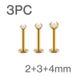 Straight Studs with Flat Back and Internally Threaded Screw Top Adorned With Shiny CZ Cystal. Set Is Ideal for a Variety of Fashionable Ear and Face Piercings Because It Includes Three Different Sizes of Studs.