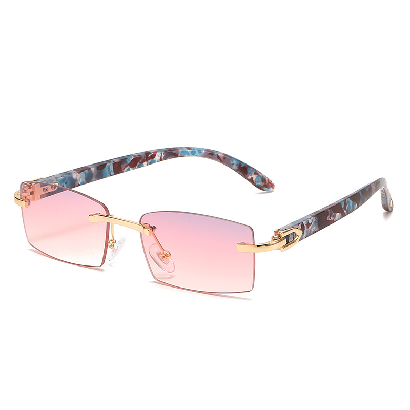 2021 Nuovi occhiali da sole senza montatura in scatola, occhiali da sole con rifiniture in corno alla moda europea e americana, occhiali da sole personalizzati color gelatina per donna