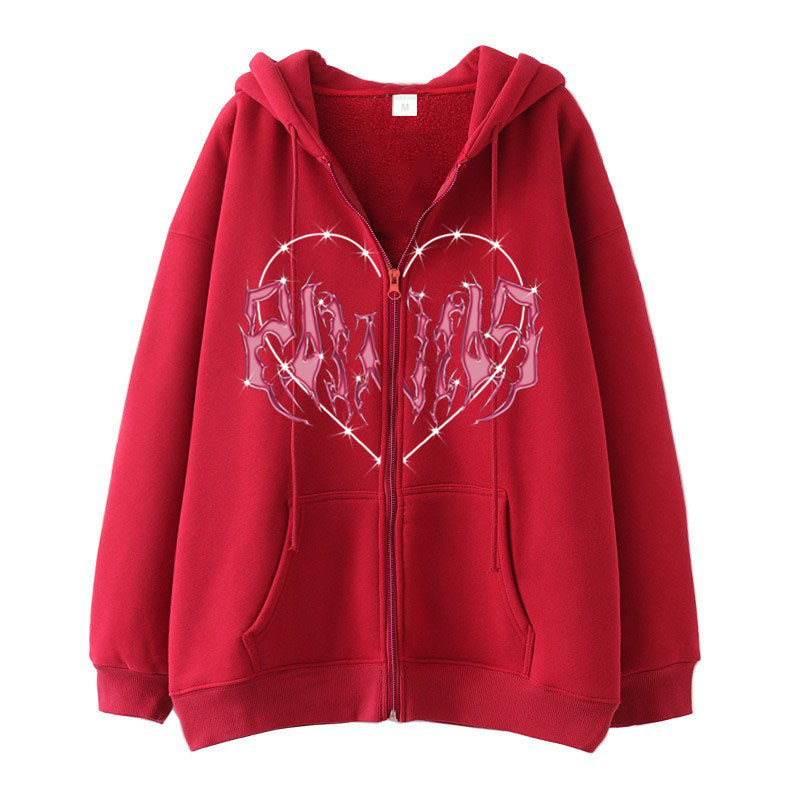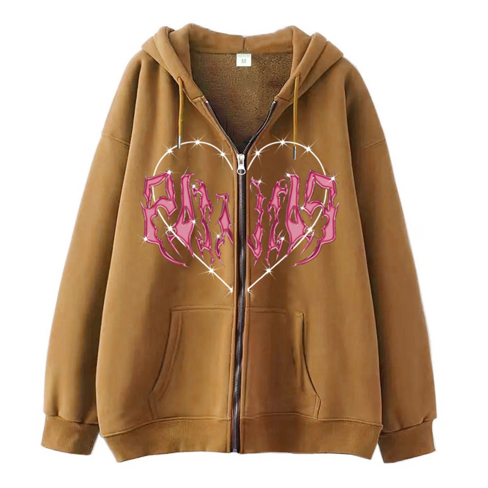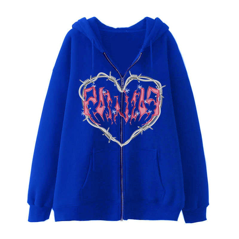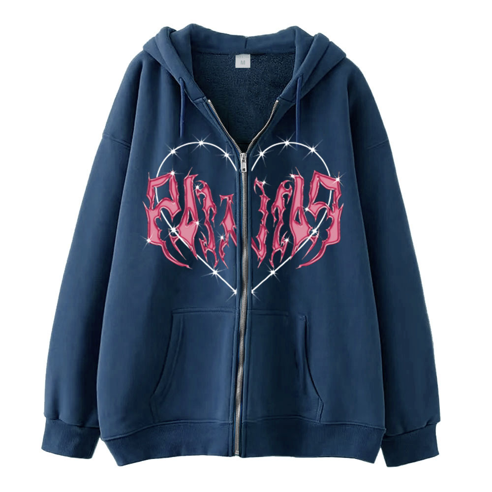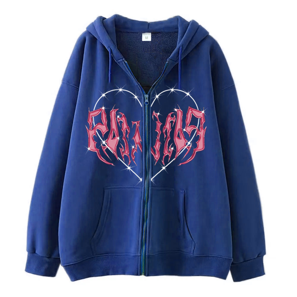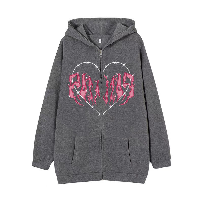 2022 Men's Gothic Zipper Sweater Hoodie Shopping Versatile Hoodie Loose Fleece Fashion Label