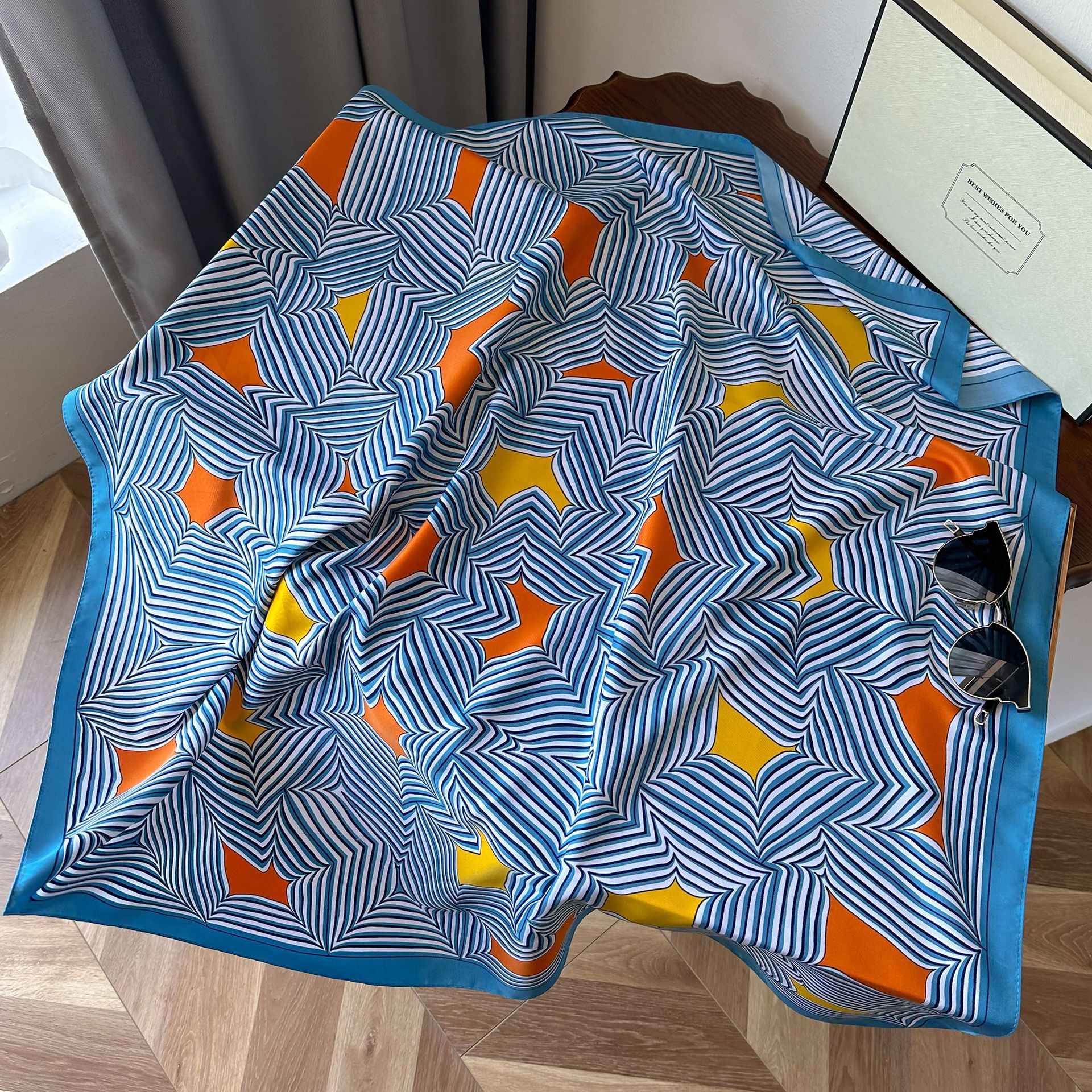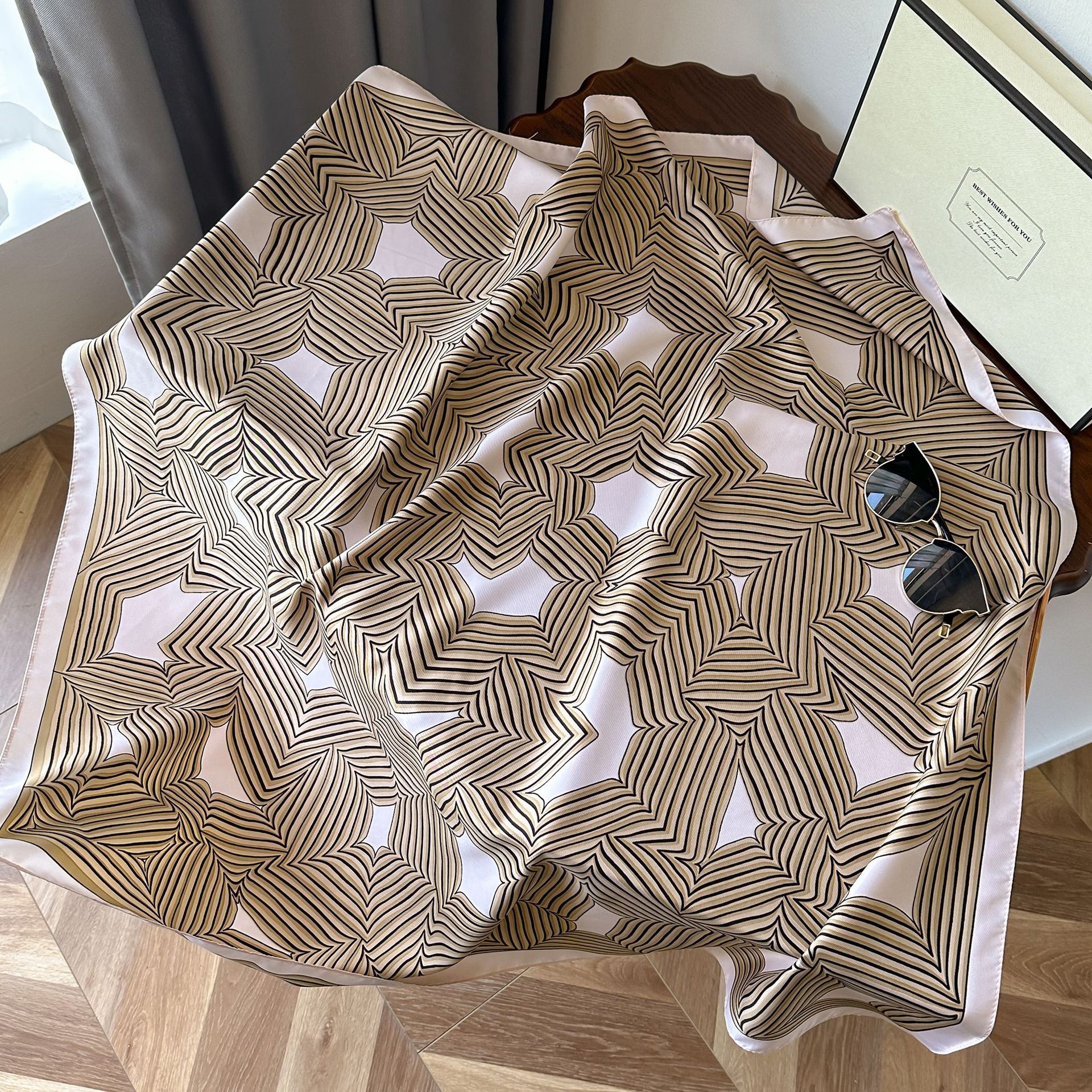 2023 Autumn New Silk Scarf Striped Square Scarf Women's Korean Edition Printed Imitation Silk Headband Sunscreen Shawl