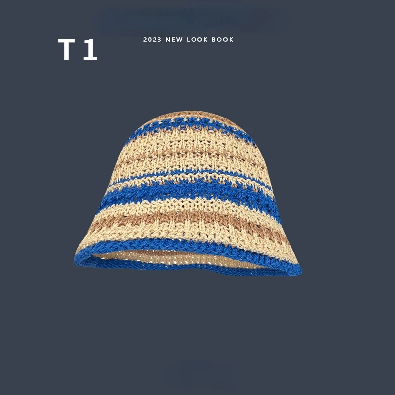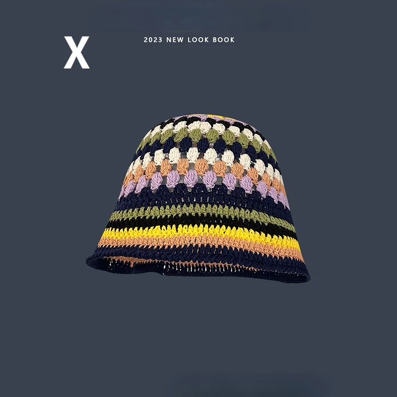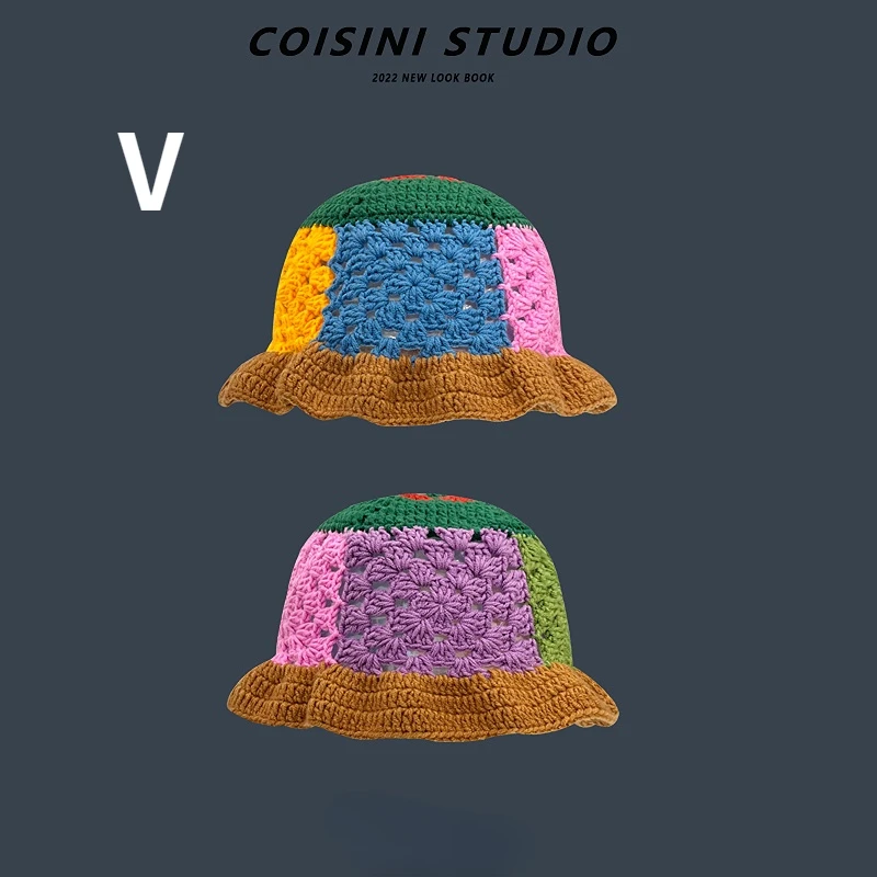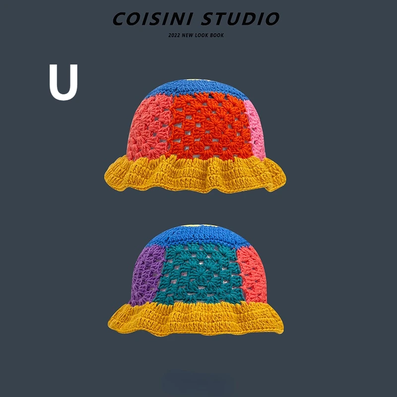 2023 Cappello da pescatore all'uncinetto a fiori Donna Primavera Estate Berretti fatti a mano in maglia INS Berretto panama con berretti carini coreani