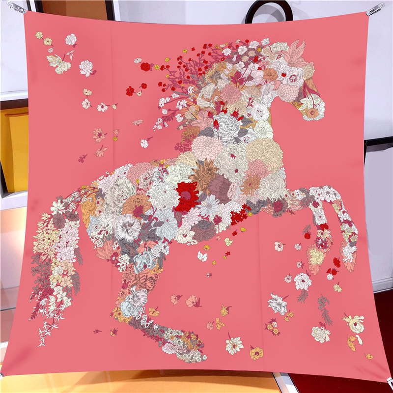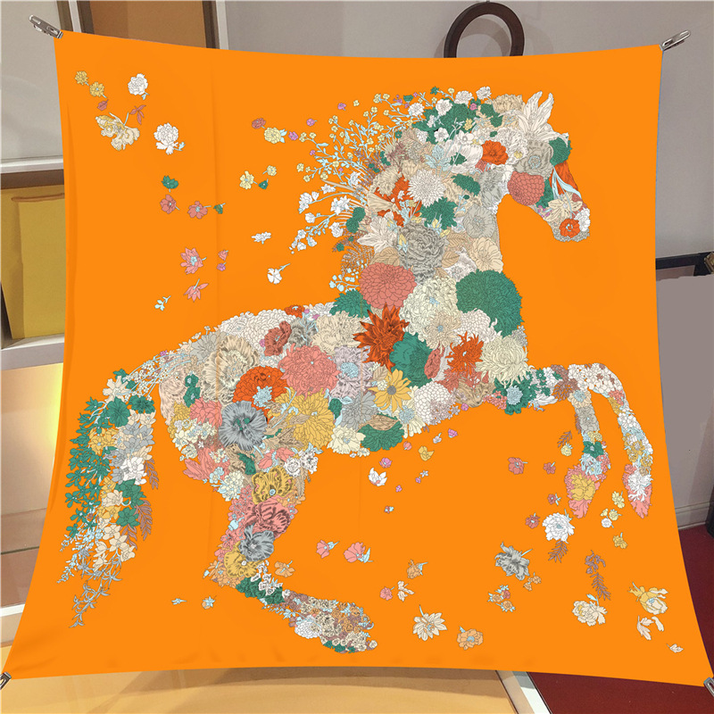 2023 Nuova sciarpa di lusso leggera quadrata stampata in seta twill di cavallo colorata