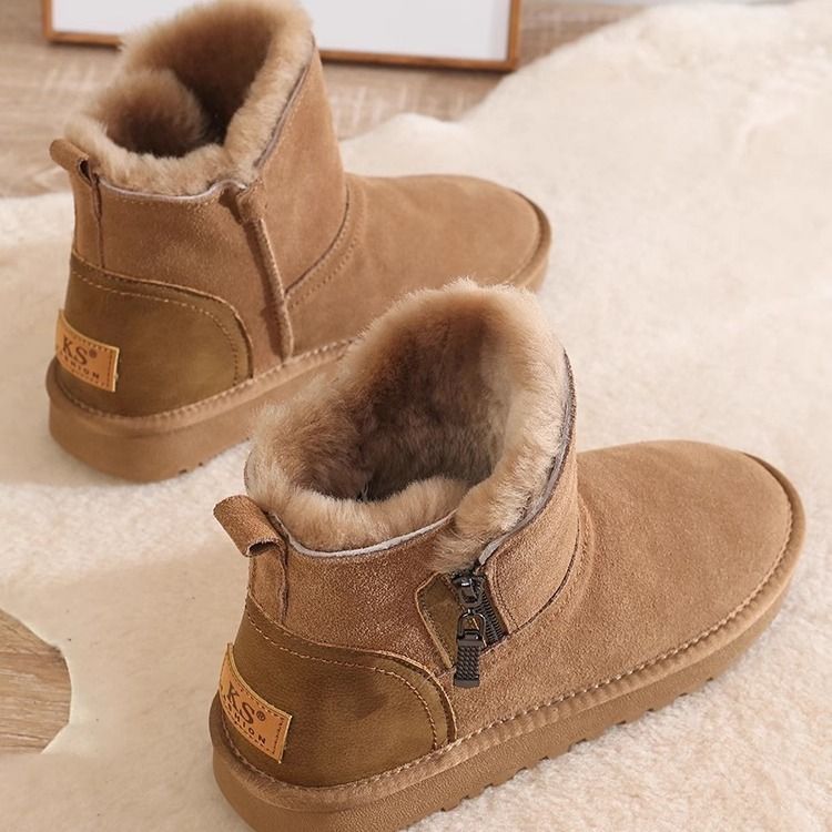 2023 Nuovi stivali corti invernali integrati in pelle e pelliccia a tubo corto, antiscivolo, pelliccia ispessita, scarpe di cotone calde