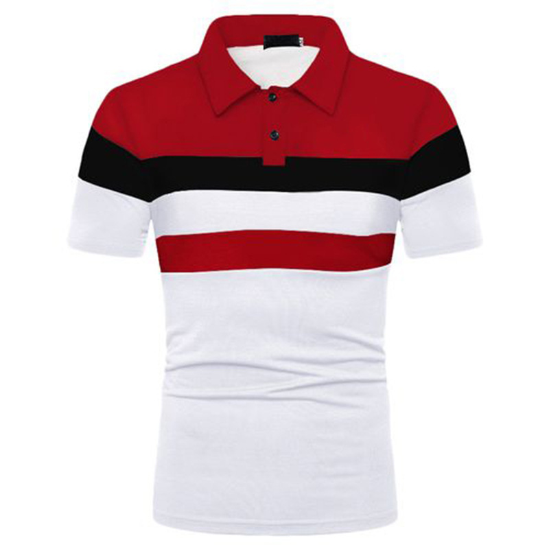 2023 men's short sleeved Polo shirt with three stripes on the chest, fashionable matching with men's lapel and short sleeved Polo