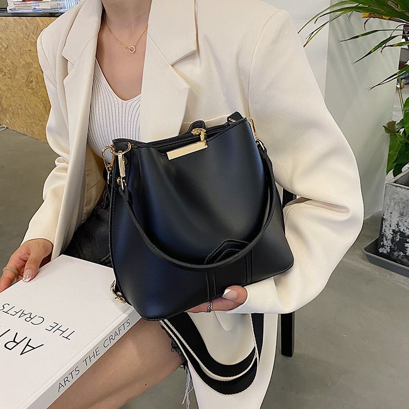 2024 nuova borsa da donna alla moda borsa a tracolla super morbida borsa a secchiello per acqua PU borsa tote versatile avanzata casual da donna di grande capacità_voghion.com
