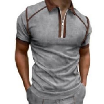 2024 Summer New Short Sleeve Zipper Polo Shirt with Digital Printing, Trendy and Personalized Polo Men's Top