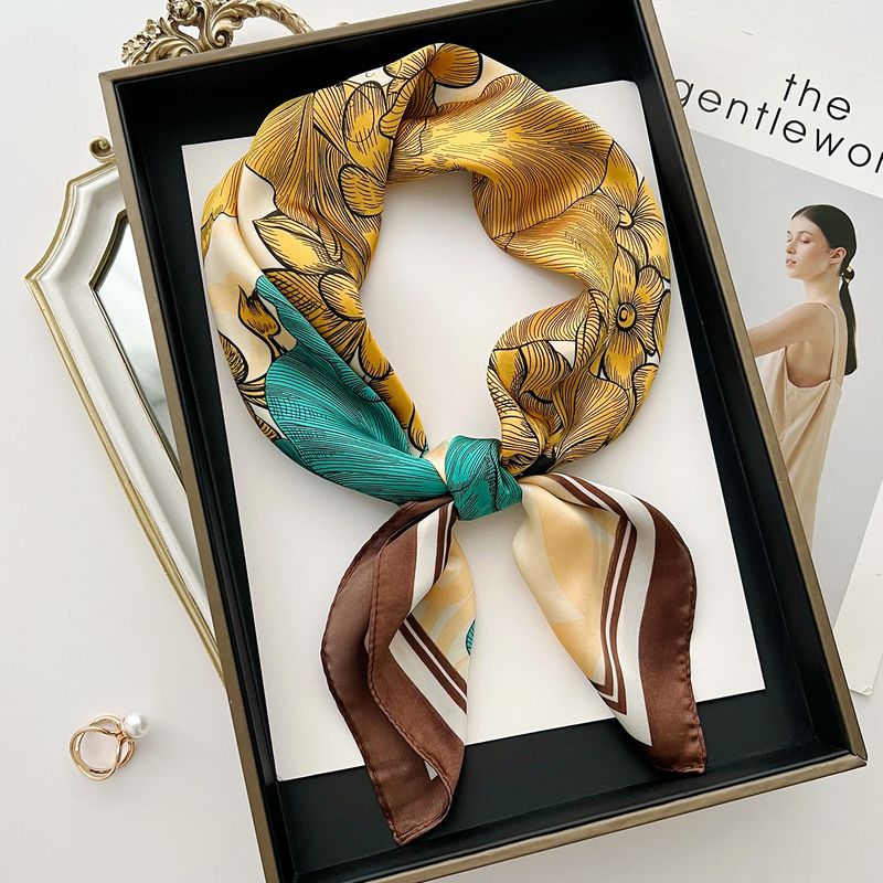 2024 New Korean Fashion Printed Thin Silk Scarf for Spring and Summer Travel Sunscreen Shawl Shirt Professional Wear Scarf