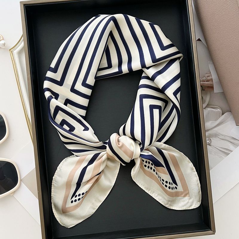 2024 new minimalist geometric striped silk scarf for women, paired with shirts, professional attire, small and medium-sized square scarves, scarves, shawls, dual-use