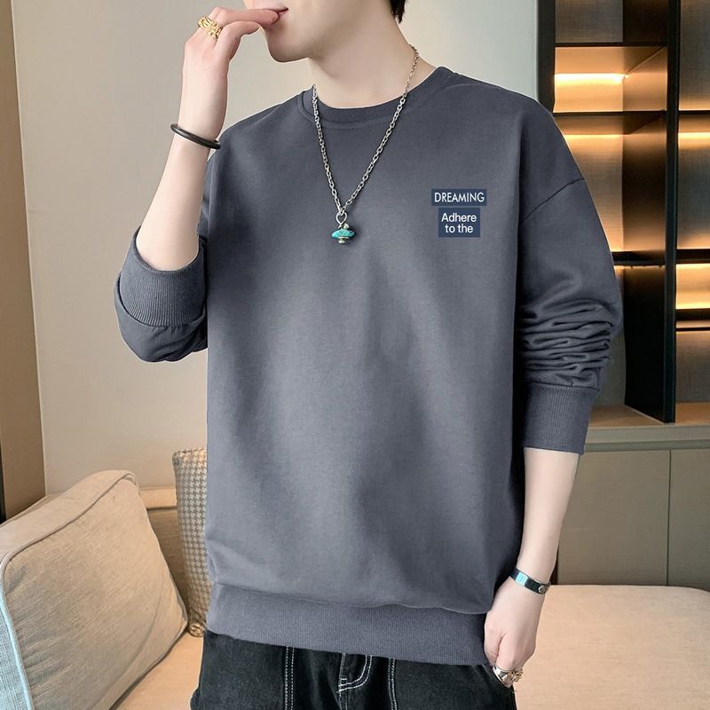 2024 new autumn long sleeved men's hoodie trend base shirt men's round neck