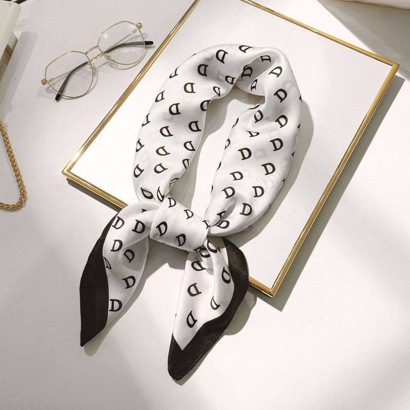2024 New Simulated Silk Scarf Women's Fashion Style Curled Small Square Scarf Sweet Decorative Small Scarf from Japan and South Korea