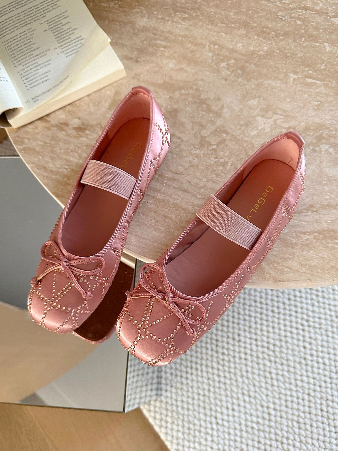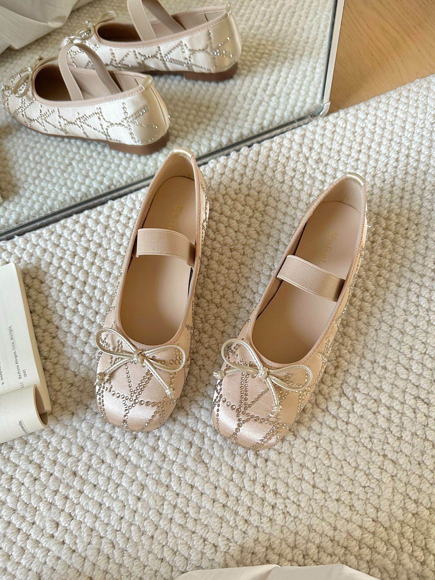 2024 Spring and Autumn Season New Water Diamond Flat Bottom Ballet Single Shoes Fairy Style Bow Satin Mary Jane Shoes