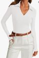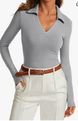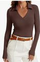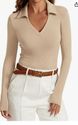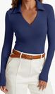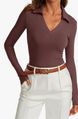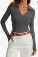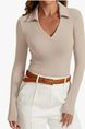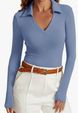 Top a maniche lunghe slim fit con revers tinta unita, stile casual e versatile, da donna, stile 2024