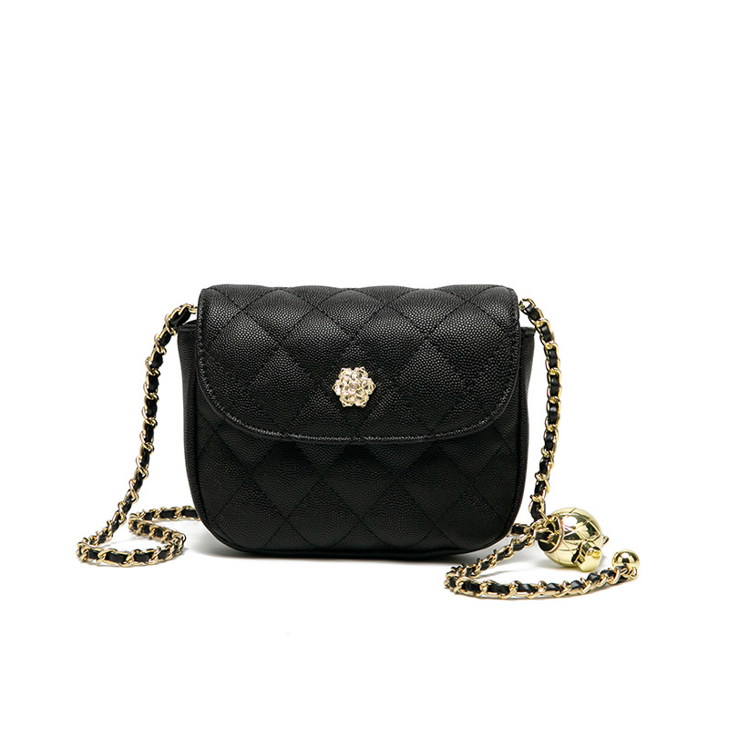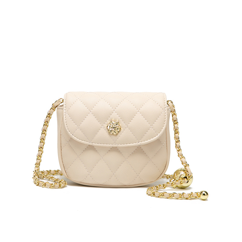 2023 Versatile Solid Color Small Square Bag Fashionable Lingge Small Golden Ball Chain Bag, Unique Design, Single Shoulder Crossbody Women's Bag