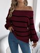 Maglione pullover casual a righe con spalle scoperte e maniche a lanterna, autunno e inverno 2025, abbigliamento da donna
