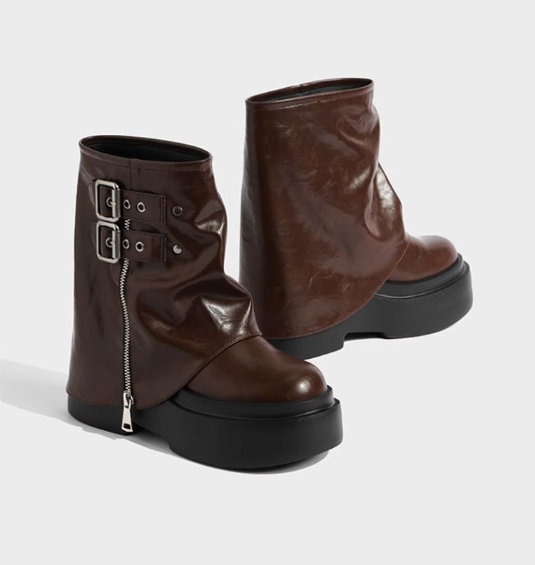 Pantaloncini da donna autunno/inverno 2025 con fibbia e cerniera laterale, stile hot girl alla moda e alla moda, design rialzato con suola spessa.