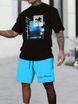 2025 Cross-Border Hot-Selling Fashion Short-Sleeve T-Shirt and Pants Loose Fit Men's 3D Digital Print Customizable
