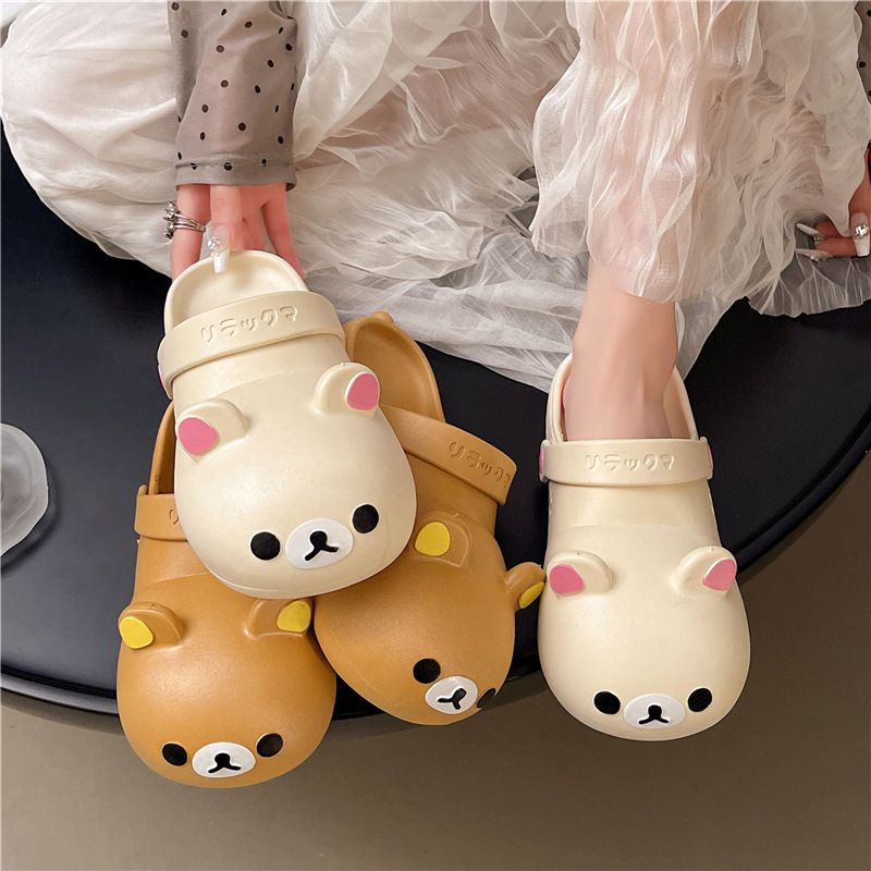2025 Internet Celebrity Cute Rilakkuma Clog Shoes Versatile Outdoor Soft Sole Big Head Bear Sandals For