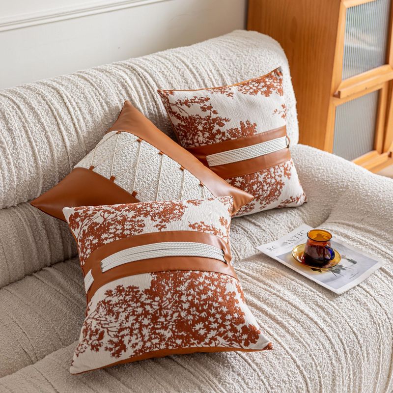 New Orange Leather Sofa Cushion Cover Multi-Craft Office Pillow High-End Hotel Villa Bedside Cushion