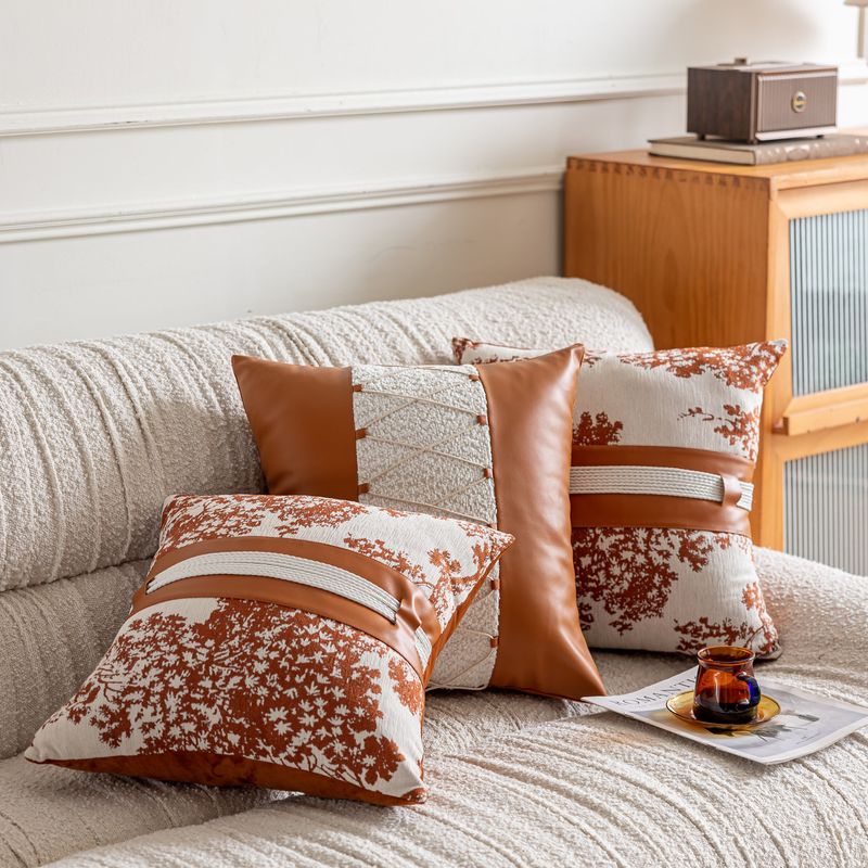 New Orange Leather Sofa Cushion Cover Multi-Craft Office Pillow High-End Hotel Villa Bedside Cushion