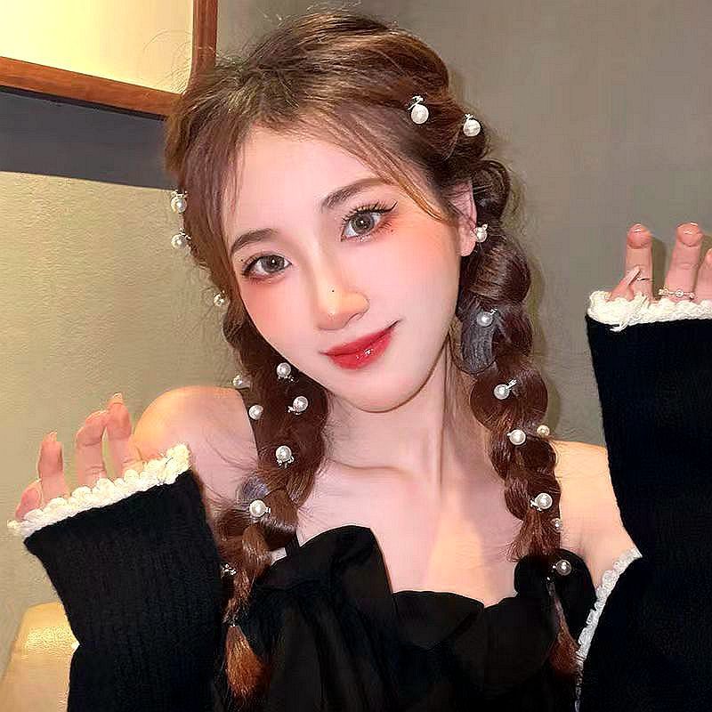 Super Immortal Pearl Bean Hair Clip Hairpin, Internet Red Plate Hair Braiding, Side Hair Accessories, Mini Small Buckle Clip Headpiece Decoration