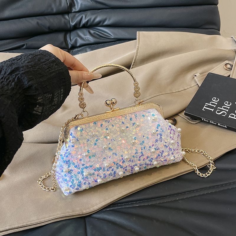 2025 Nuova borsa a mano in metallo versatile con paillettes per donna, tracolla lucida alla moda, piccola borsa quadrata testurizzata
