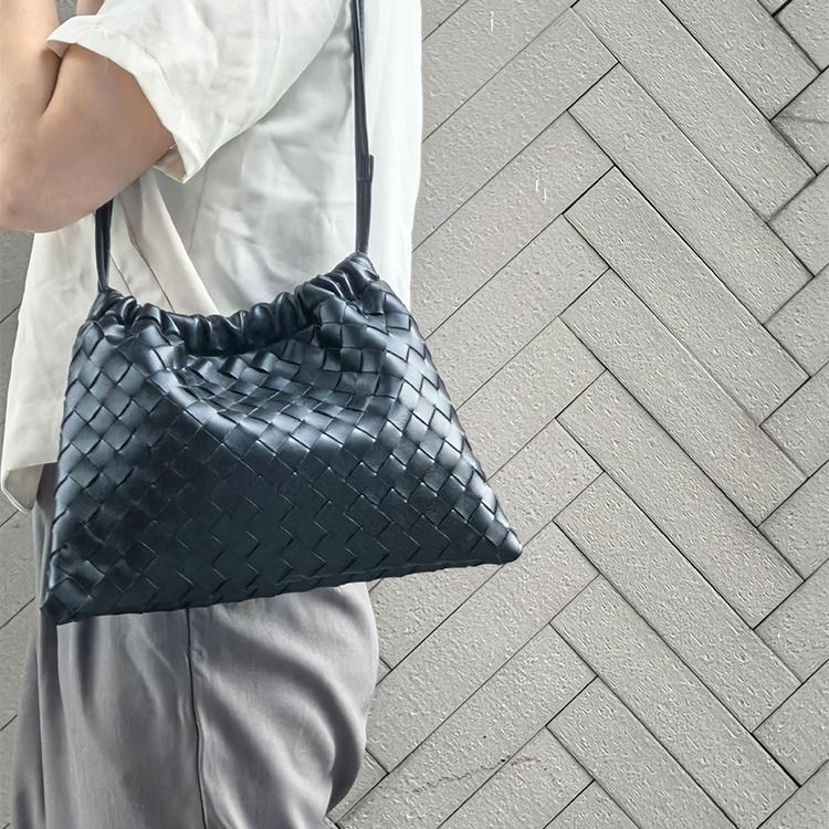 2025 New High-End Woven Bag Quilted Magnetic Buckle Drawstring Handheld Genuine Leather Women's Bag Simple Shoulder Crossbody Bag