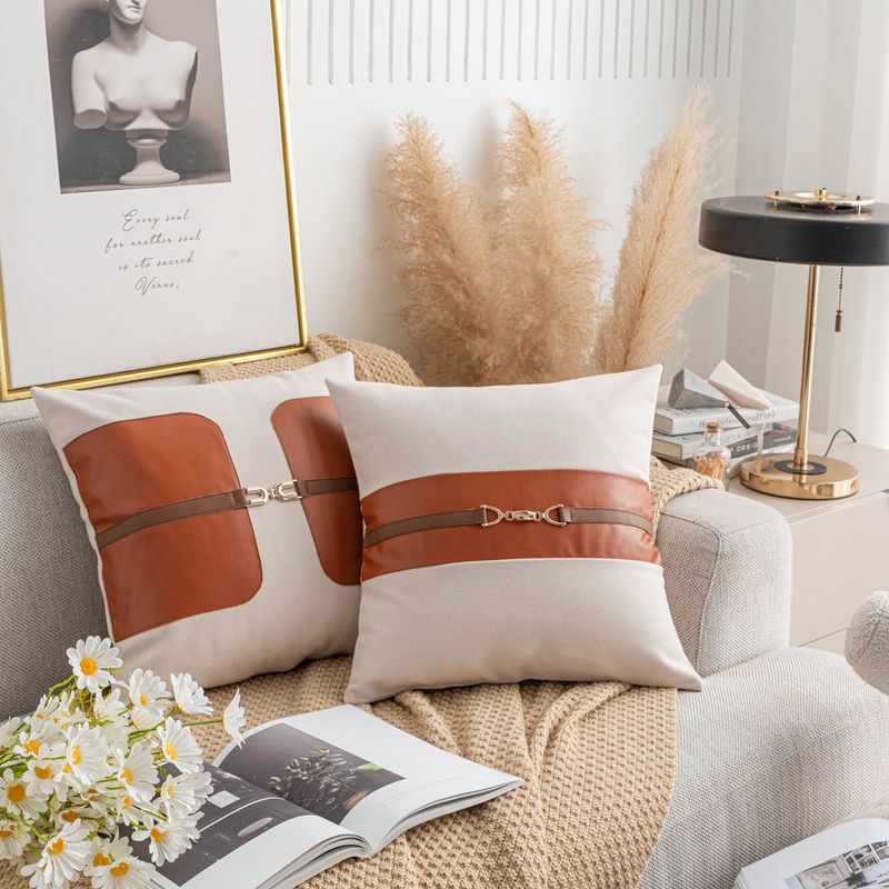 2025 New Luxury INS Style Pillowcase Creative Leather Patchwork Sofa Cushion Double-Sided Pillow