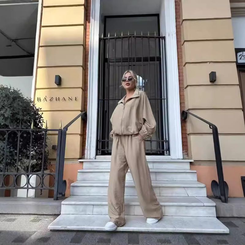 2025 Set da due pezzi per donna, per il tempo libero, dimagrante, con maniche lunghe, camicia e pantaloni lunghi, europeo e americano_voghion.com