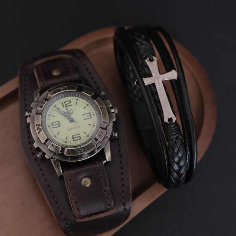 2025 Spring Hand-sewn Men's Watch PU Leather Fashion Quartz Wristwatch