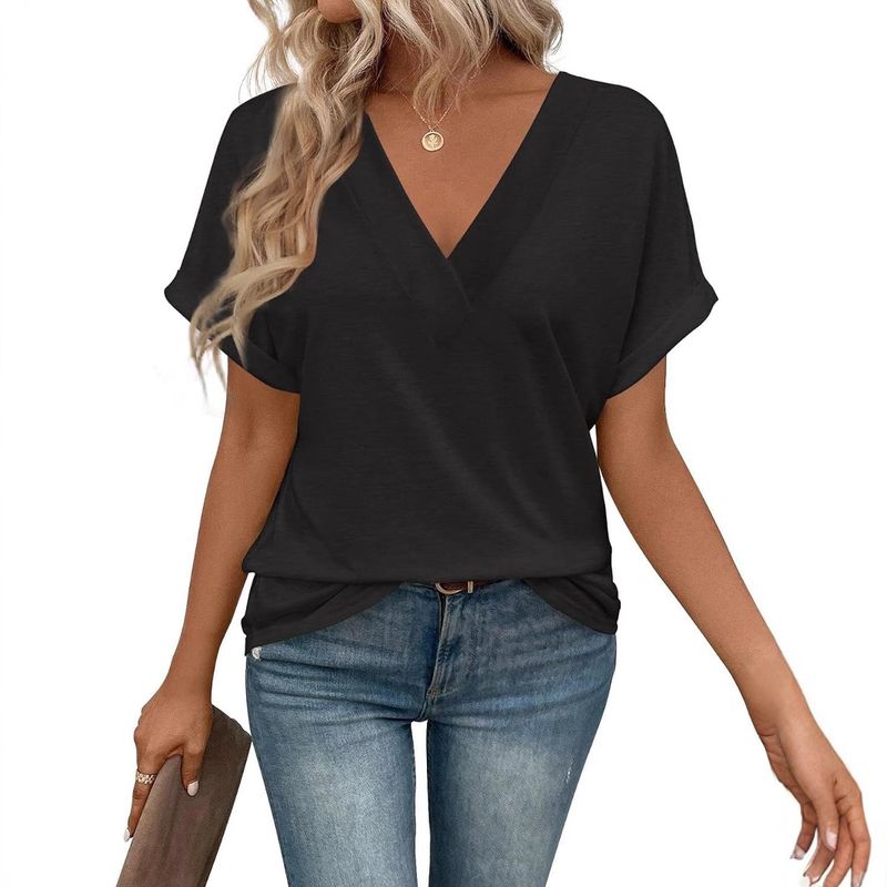 Maglietta a maniche corte tinta unita con scollo a V, ampia e ampia, da donna, estate 2025
