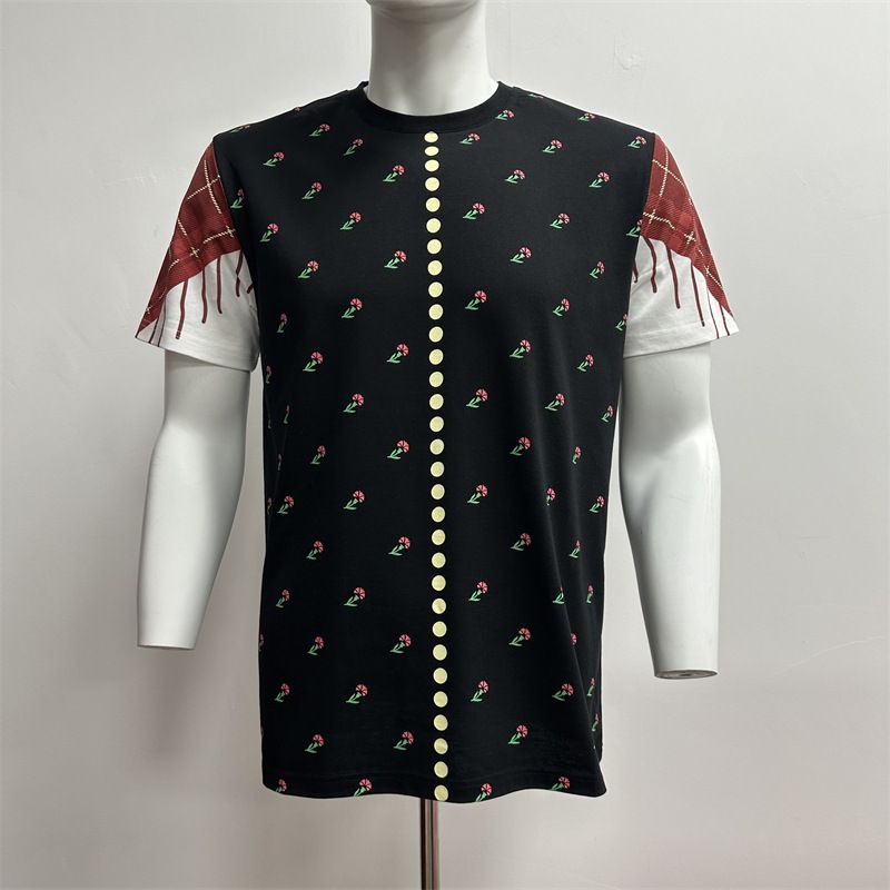 2025d 100% cotone da uomo, maglietta con stampa floreale all-over, color-block, manica corta, girocollo, stampa culturale, realizzata su misura