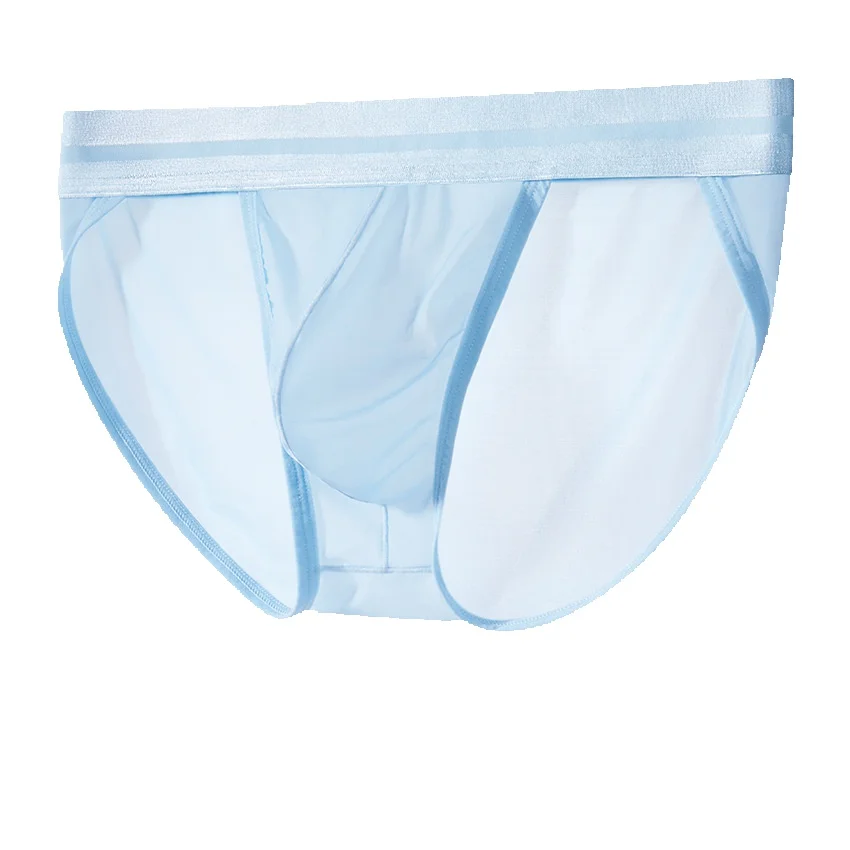 Summer Ultra-Thin Ice Silk Transparent Film High Transparency Triangle Briefs Men's Low Waist High Cut Sexy Underwear