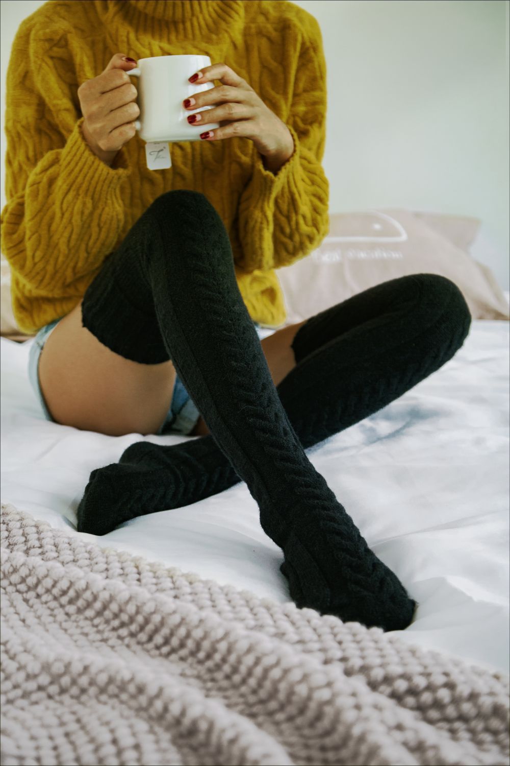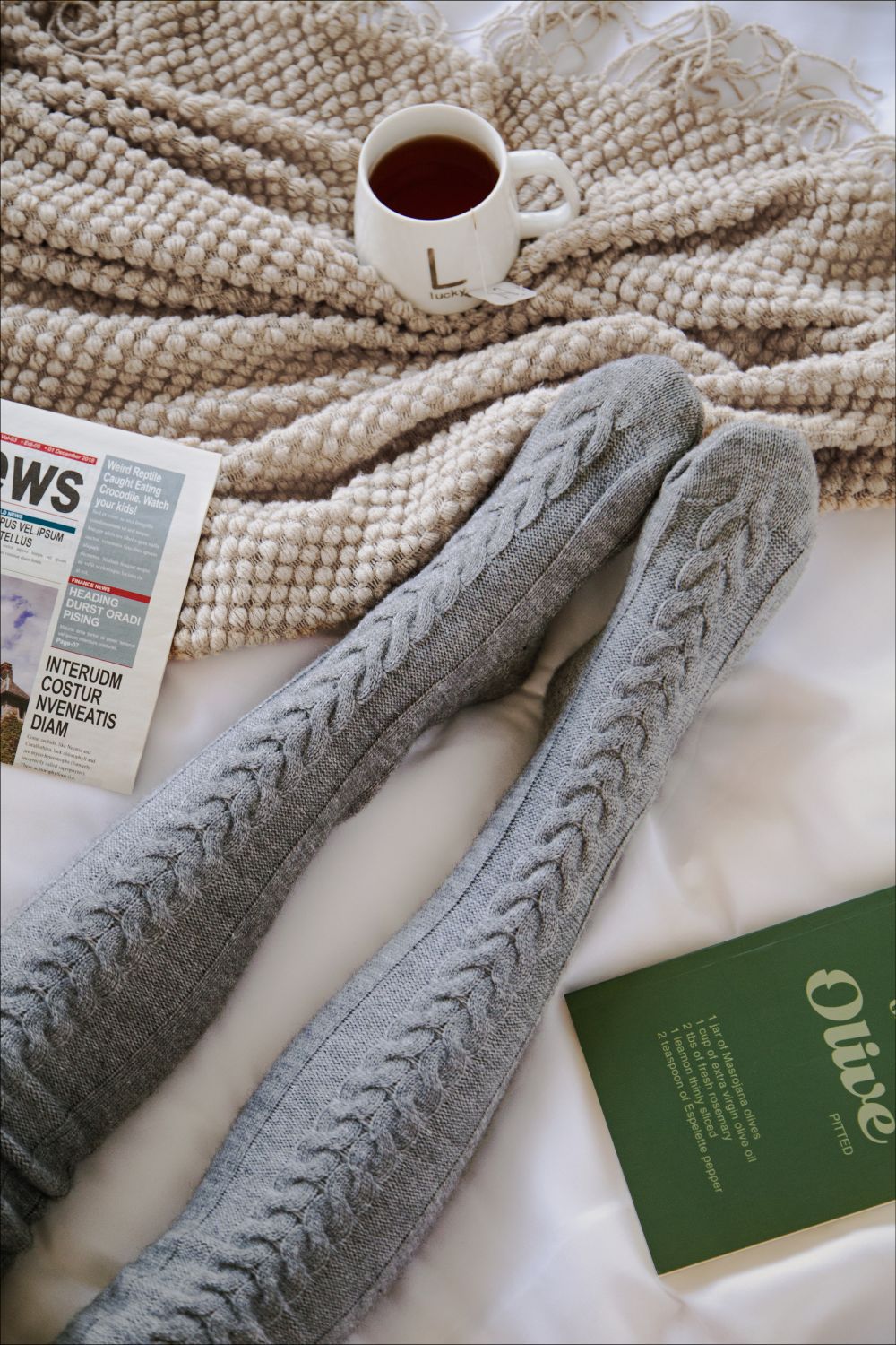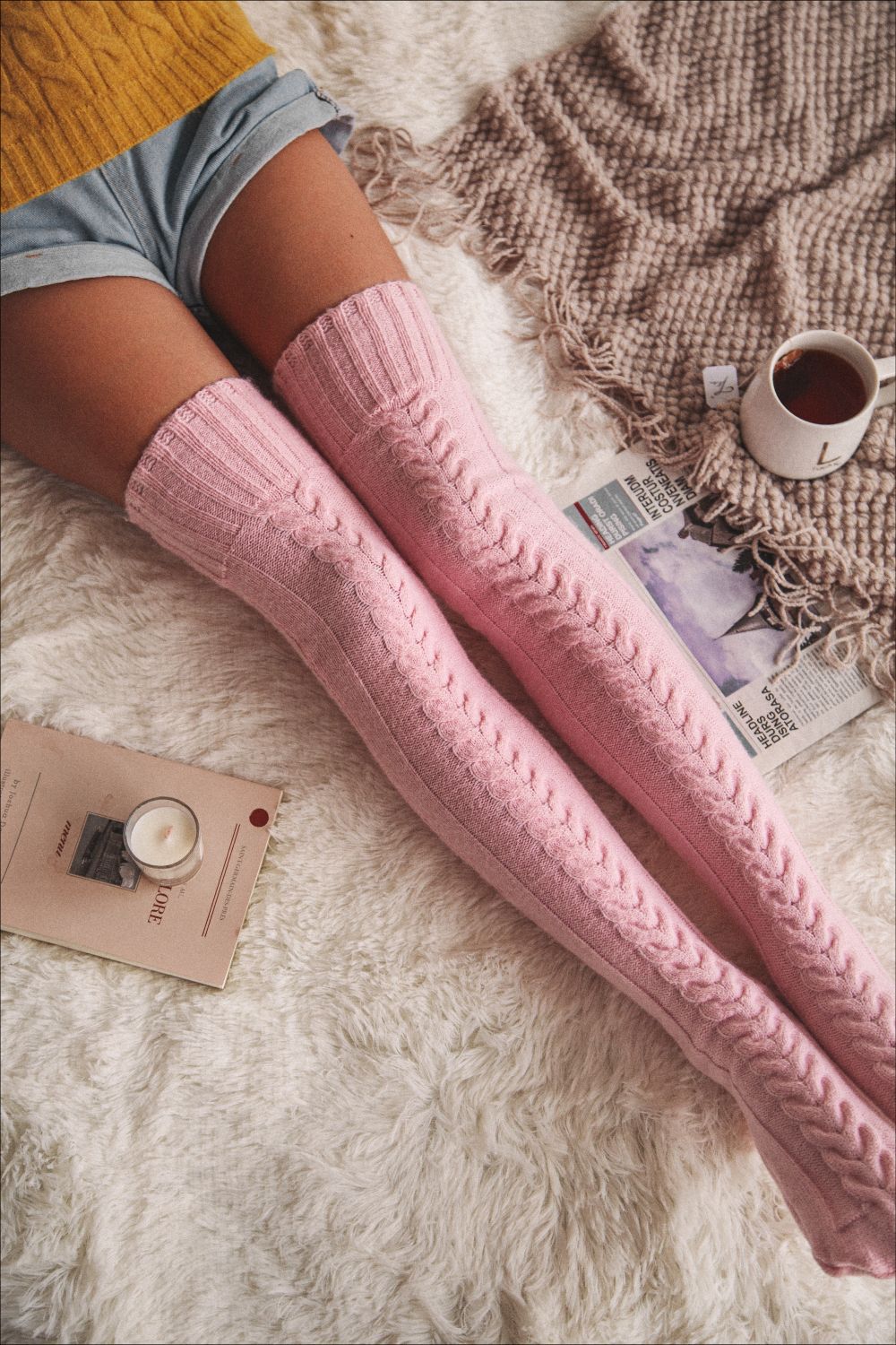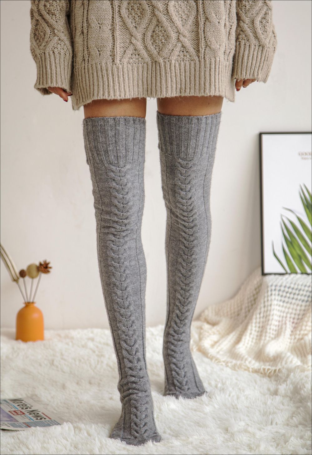 Socks Autumn Winter Warm Solid Color Over-the-Knee Socks Knitted Long Tube Cable Pile Socks