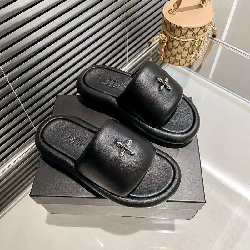 SMFK Cross Flower Buckle Slippers for Women Outdoor 2025 Summer Thick Sole Height Increasing One-Strap Slippers Women Beach Sandals Women