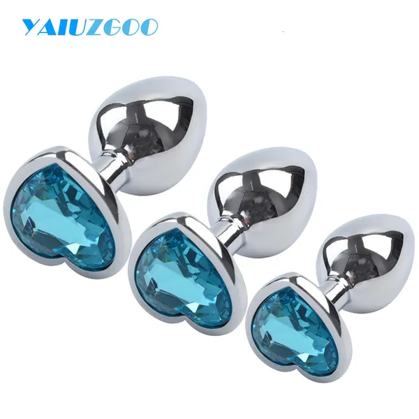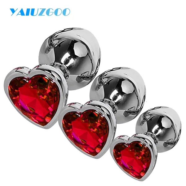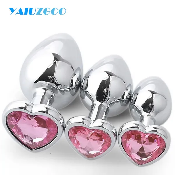3 pezzi set giocattoli anali spina cuore cristallo in acciaio inossidabile giocattolo liscio per le donne stimolatore di testa di 3 dimensioni massa della prostata