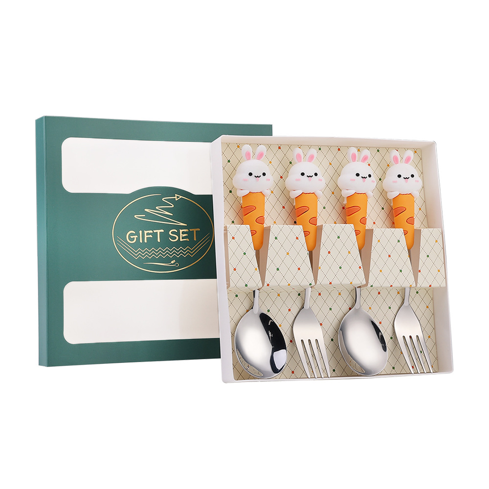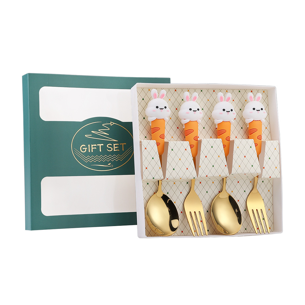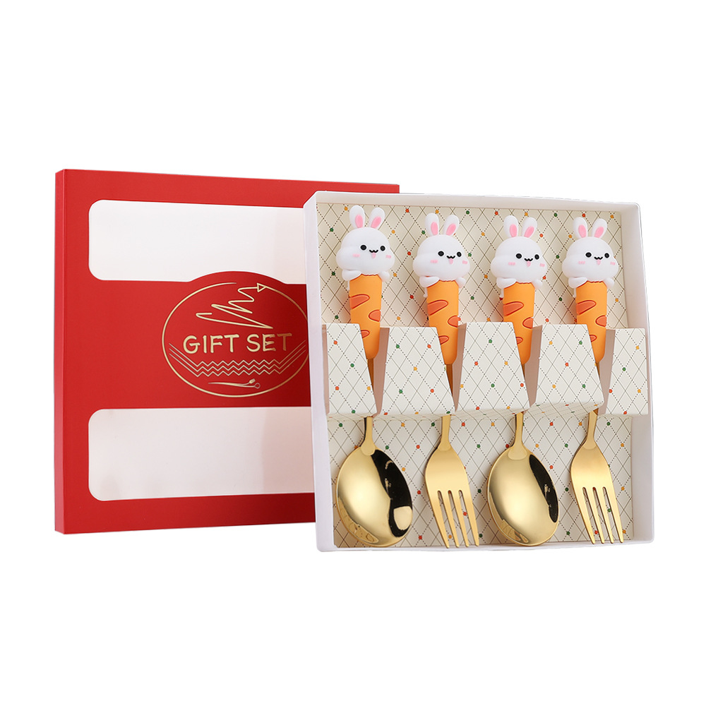 304 Creative Cute Rabbit Large Round Spoon Coffee Spoon Gift Set Adorable Dessert Spoon Fruit Fork Gift Box Set